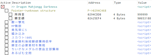 日曜日になっても音沙汰が無ければver1.03で作成した今でも使用可能なスクリプトを含むCheat EngineのCTを投稿したいと思います。