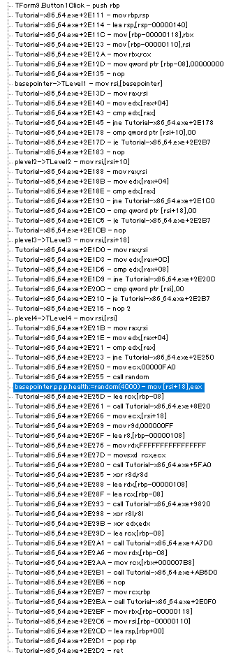 HP変数に書き込みアクセスする命令を含んでいる関数 (TGameObjectWithHealth.Damage)